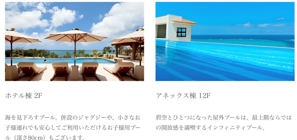 沖縄には素敵なホテルがたくさんありますが、とても満足できたので宿泊候補の参考になればと思います。