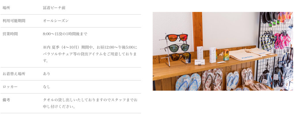 ホテルの目の前に広がる「冨着ビーチ」の近くに宿泊者限定で利用可能なビーチハウスがあります。